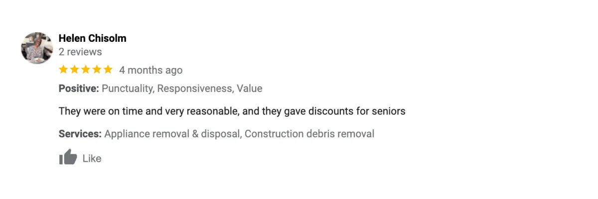 Complimentary Cleanup We’ll sweep and clean things up for you how you want it after we’re done.